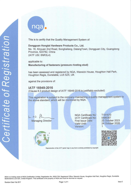 東莞市紅泰五金制品有限公司,公司占地六千多平方米,擁有五十多組螺絲機及六十臺自動車床設備。是一家專業設計、生產ISO、DIN、GB、JIS、ANSI、BS及客戶指定特殊要求的高精密五金緊固件的制造企業。